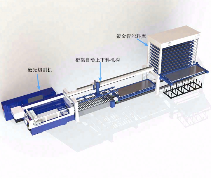 1. 激光切割機(jī)上下料+鈑金料庫(kù)(4層)