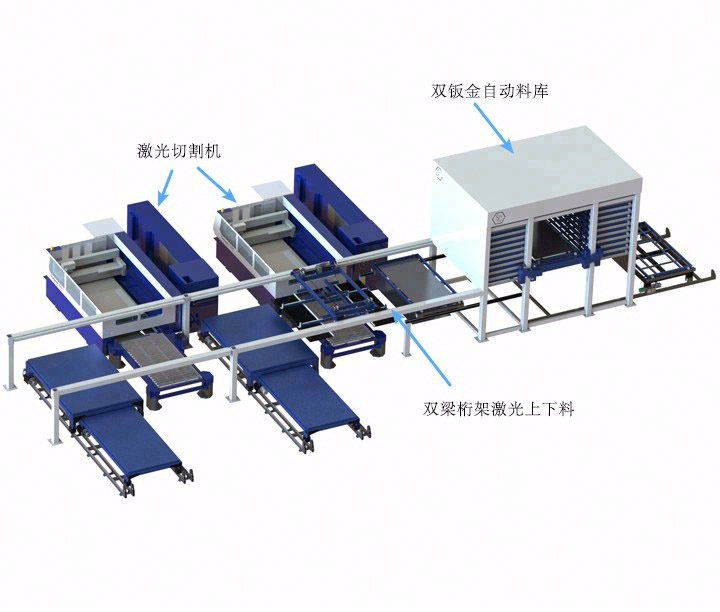 2. 激光切割機(jī)上下料+鈑金料庫(kù)(15層)超過(guò)就雙庫(kù)或井字庫(kù)