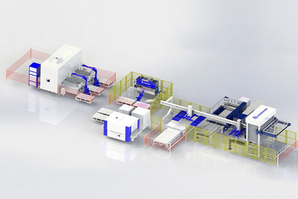 設備可擴展自動化立體料庫、自動上料裝置以及分揀堆垛裝置,實現(xiàn)鈑材到零件全自動生產流程。